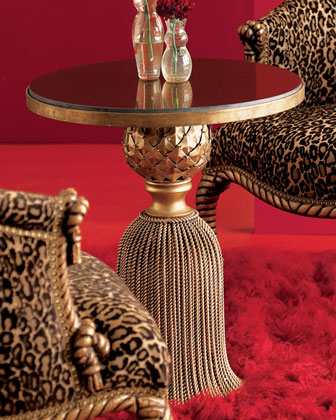 Carlton Varney Tassel Side Table, Justedits Tassel Lamp, Will Merrill for Currey & Co. – Console Table, 1stdibs Italian Rope & Tassel Bar Cart